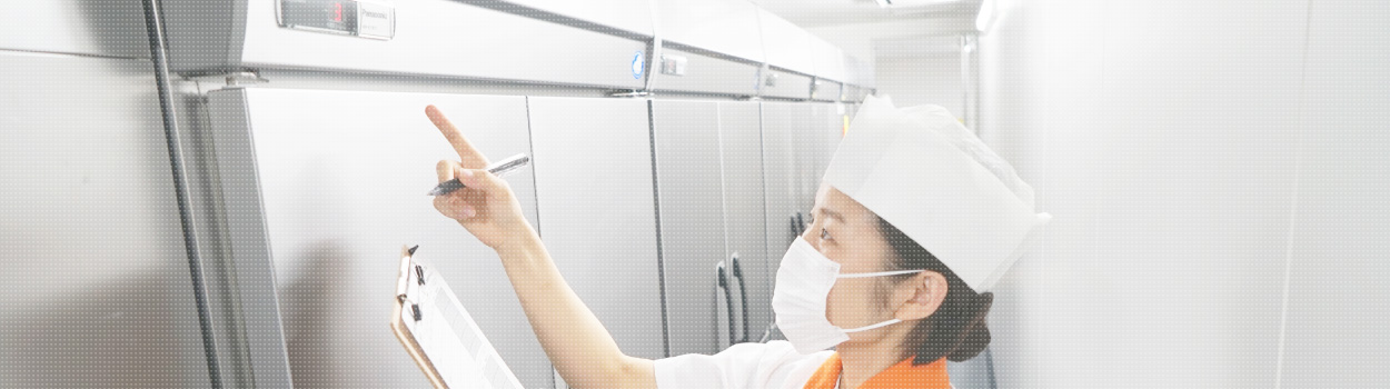 原材料から一貫した品質管理を行うことで、安全性を確保し、安心して召し上がっていただけるメニューをご提供します。そのため、お取引先とも厳正な取引基準を設定し、定期的な工場の視察、確認を実施しています。
